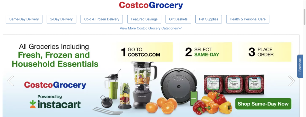 If you shop at Costco’s online store, there are both same-day and 2-day delivery options. Same-day options are usually offered from third parties like Instacart and only for meat and other groceries at your local store- so in some cases. The 2-day delivery is going to make more sense.