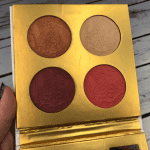 Out of all six shades, I found that Hungover was the only pan that held the most consistency. All of the matte shades were rough and dry feeling, which is to be expected since they’re matte shades. On the other hand, I also know that there are countless other luxury brands that I’ve tried that create buttery feeling matte shades. Hungover was a soft, velvety feeling pan, but it kind of spread apart from the pressure of my fingertip while I was swatching.