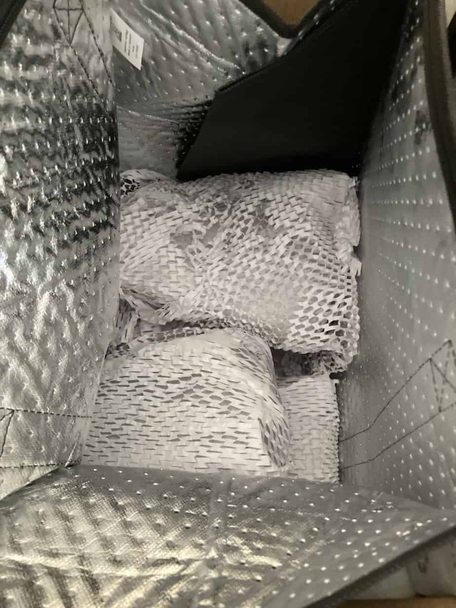 My order was packaged in one of these insulated boxes with dry ice, so it was still completely frozen by the time it arrived at my door. It came in a really nice insulated reusable tote with a zipper! I’ll definitely use the tote again while grocery shopping, especially since I live in a town that has banned plastic bags in stores!