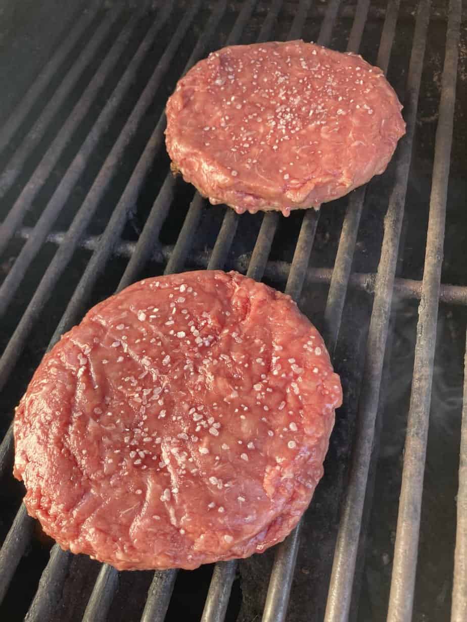 They came in a pack of two generously-sized half-pound patties separated by parchment paper. The patties were falling apart on the edges a bit, and there was some liquid in the package due to defrosting, but all in all, they held up pretty well. I just had to reform them slightly before seasoning them with a little bit of salt.