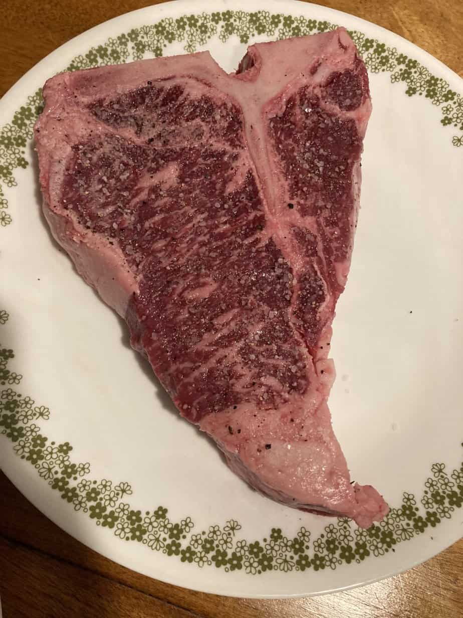 I decided to have a little steak-off with my last two cuts from Holy Grail. I had an Angus T-bone and an American Wagyu ribeye, so I decided to cook them both at the same time so that I could really taste the difference between the two types of meat and compare them.
