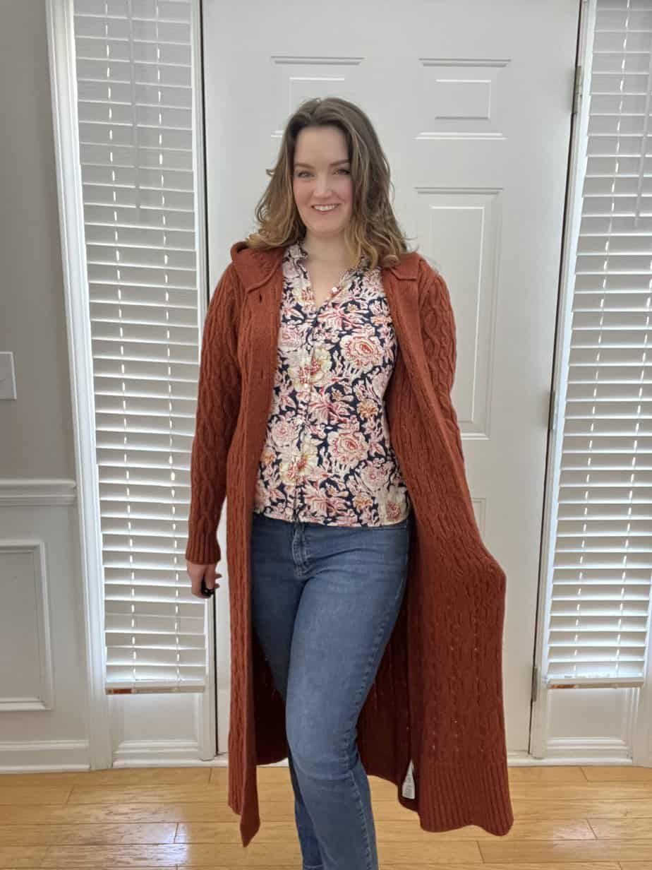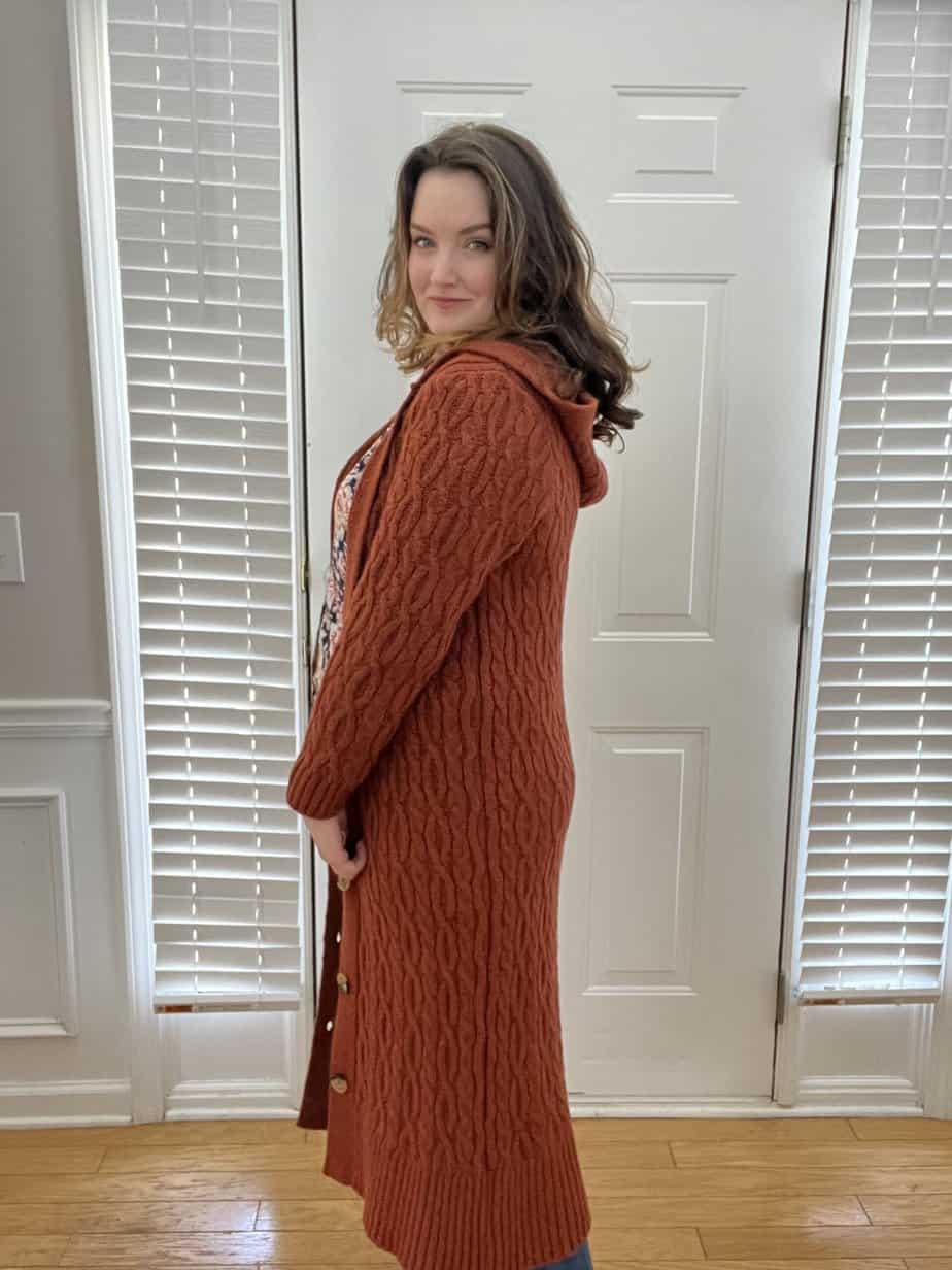 I love this! It’s thick, chunky, and longer than any other cardigan I own. I am purchasing this and living in it this fall.