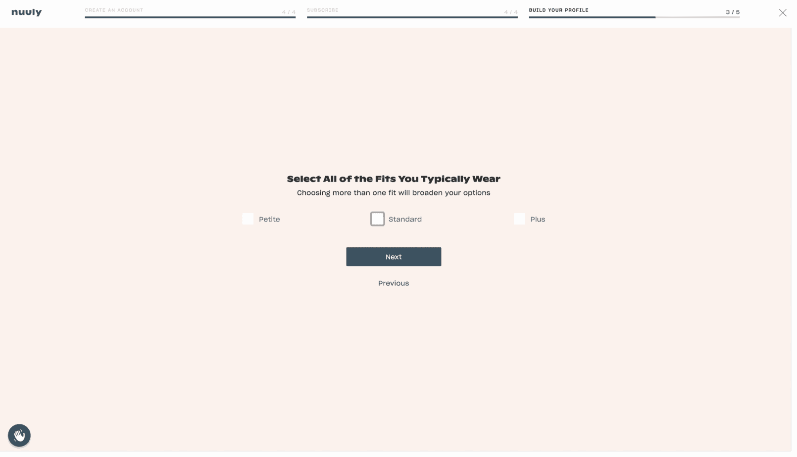 Sign up for an account on Nuuly and let them know your basic sizing information and a few other details.