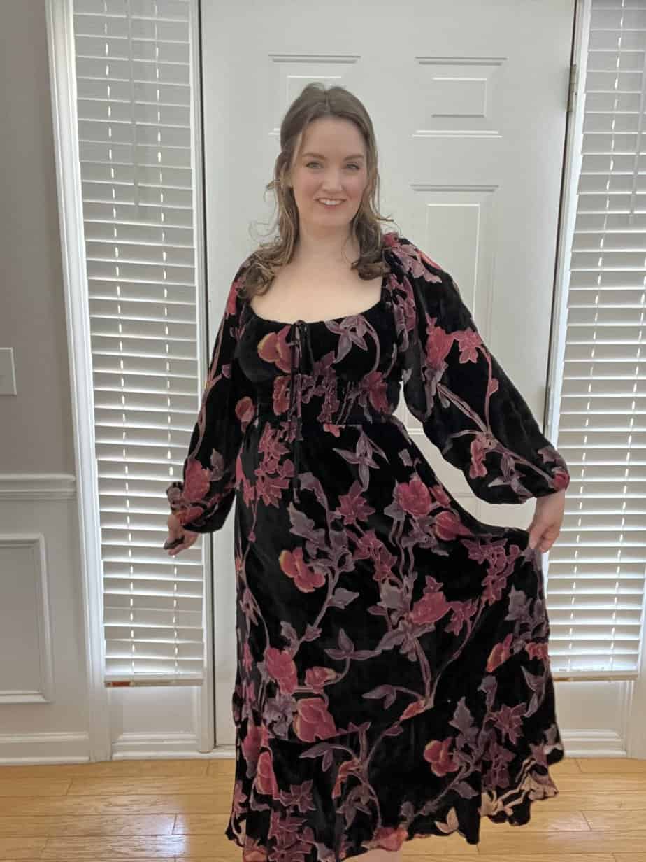 I actually love this dress and thought about keeping it at first. However, because it shows so much skin at the neckline, I feel like I wouldn’t be comfortable in it in many situations, and I wouldn’t wear it often enough to make it worth it. It’s beautiful, but it doesn’t feel like “me,” but that’s part of the beauty of clothing rental–you get to try things you wouldn’t normally wear.