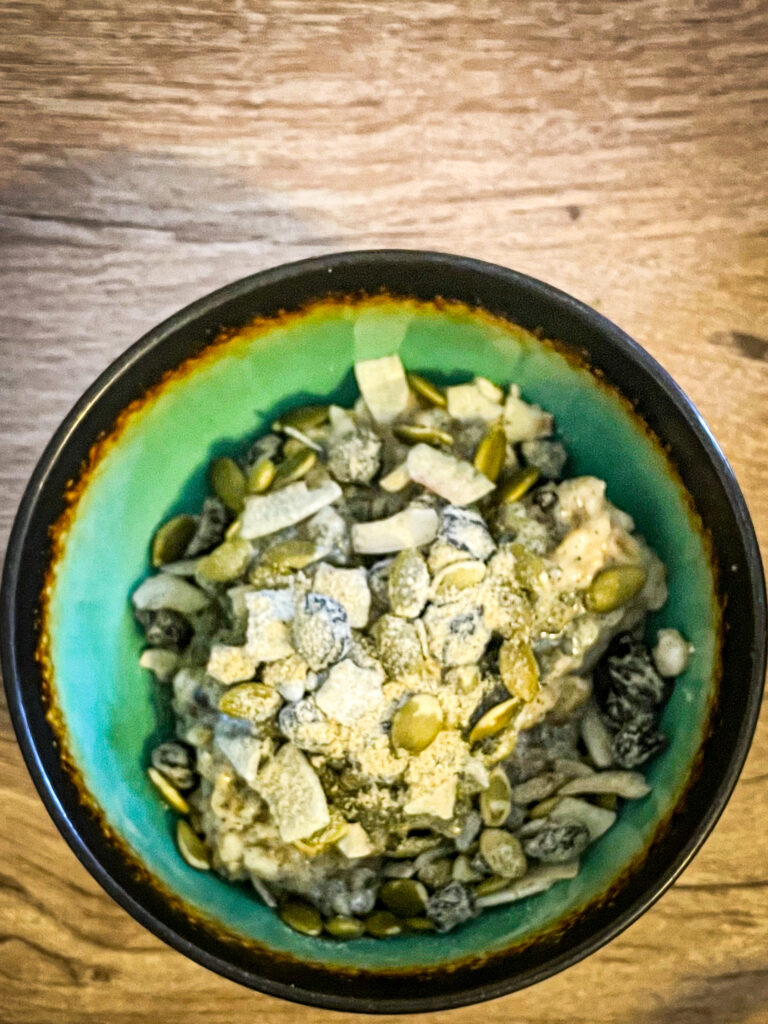 If you add sugar to your morning oatmeal, you will definitely want to add sugar to this. As for me, I like it as is. I’m not super into sugar in the morning, and remember, Proper Good’s concept is healthy food, which means less sugar. The coconut, along with the pumpkin seeds adds a crunchy texture; this package also contains chia, flax, and hemp. Talk about a power trio!