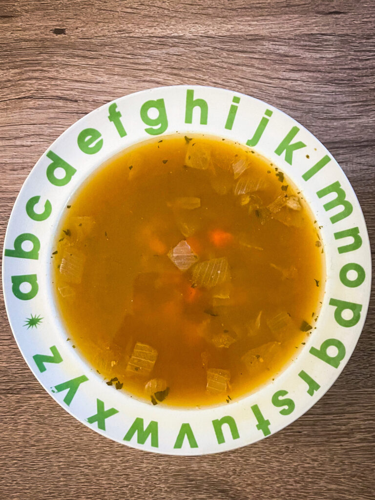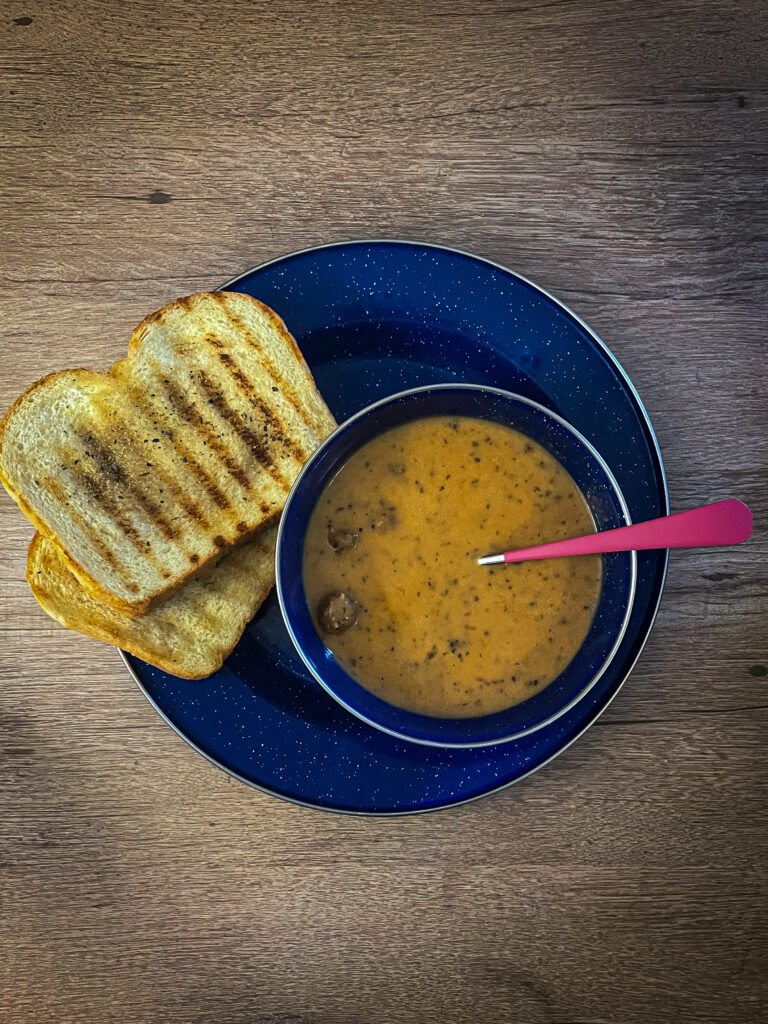 The broth alone was good enough to drink, but the meatballs were tiny moments of joy too. They were the perfect size for heating through quickly, and they had a really nice texture and Italian flavor to them too. Also, unlike the Chicken Noodle soup, this did not skimp on protein. I found the number of meatballs perfectly appropriate. This was so good! I even added some homemade garlic bread to dip in the broth — highly recommend!