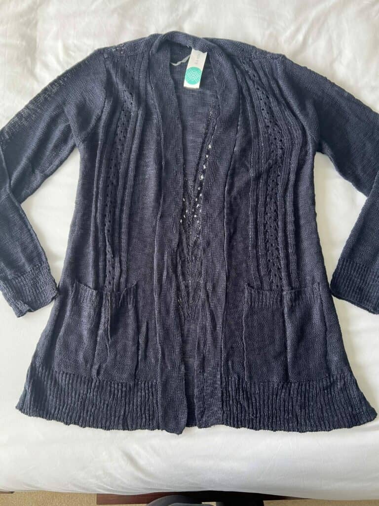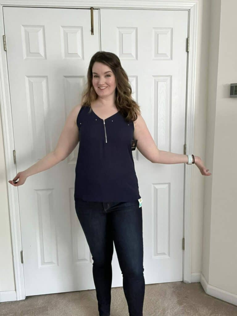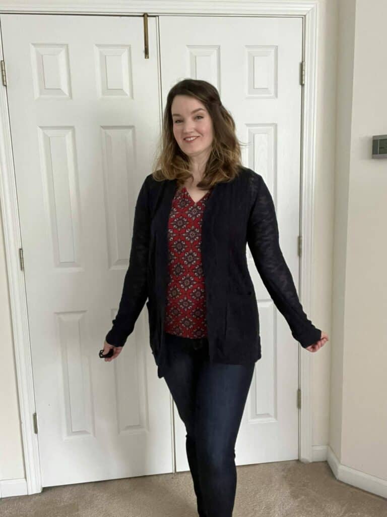 I would have liked more color variety since the jeans, one top, and cardigan were all dark blue, but that’s something to bring up in the notes before my next box.