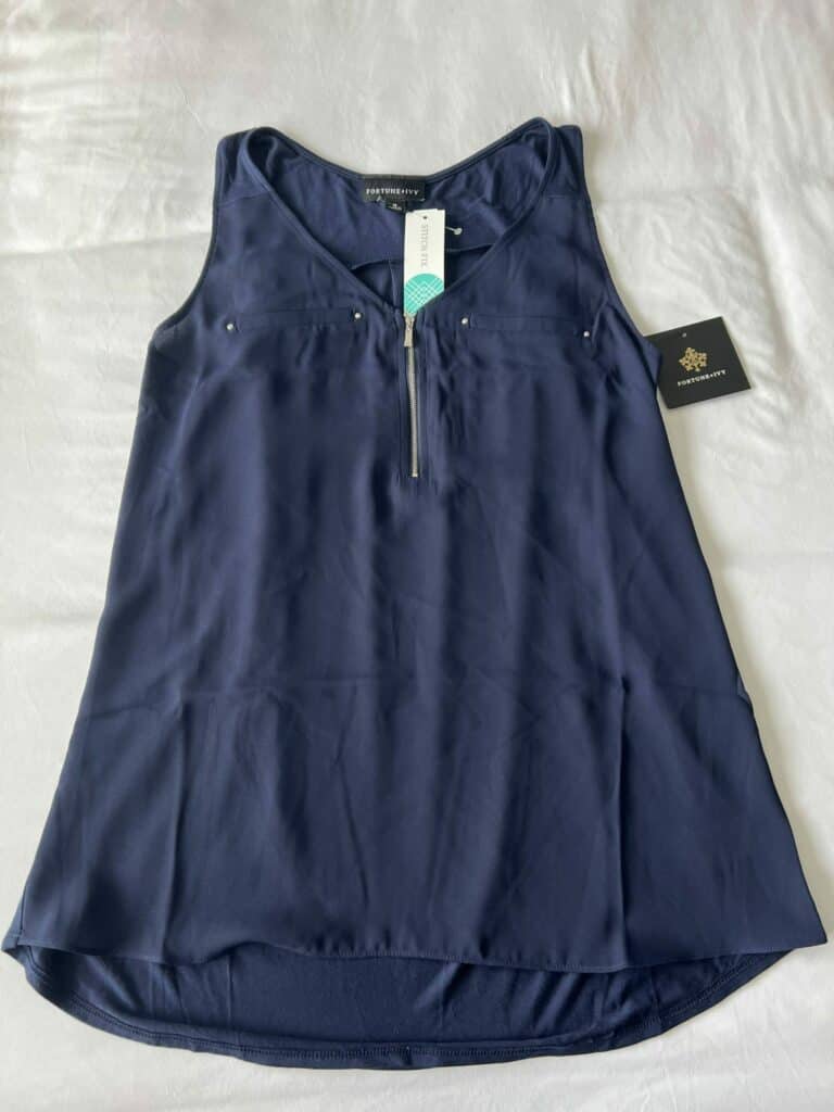 I was happy with all five clothing pieces in my Stitch Fix box. The quality and fit are good, and I feel like the stylist paid attention to my preferences in color, style profile, and patterns. Because I kept all the pieces, the price was excellent, too (just under $200.00 for all five items).