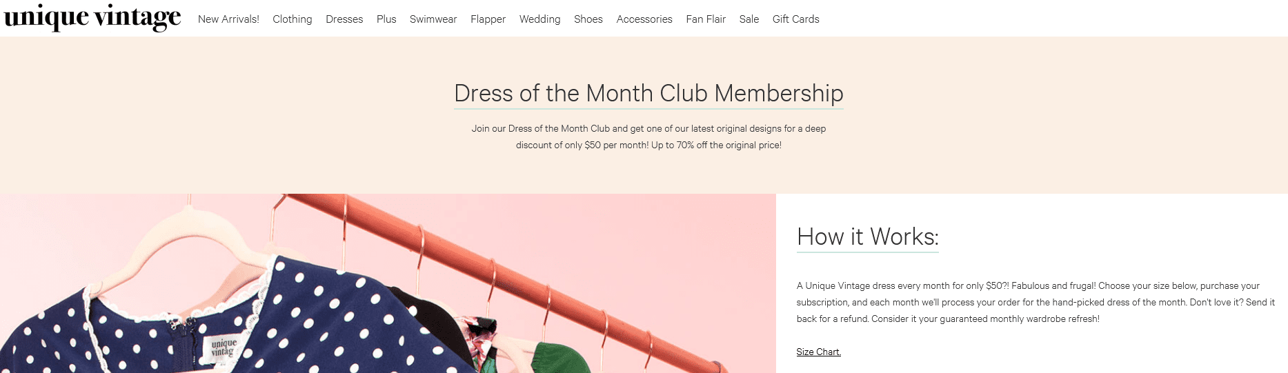 - The site sells all kinds of vintage-style clothing, but the subscription only includes dresses.