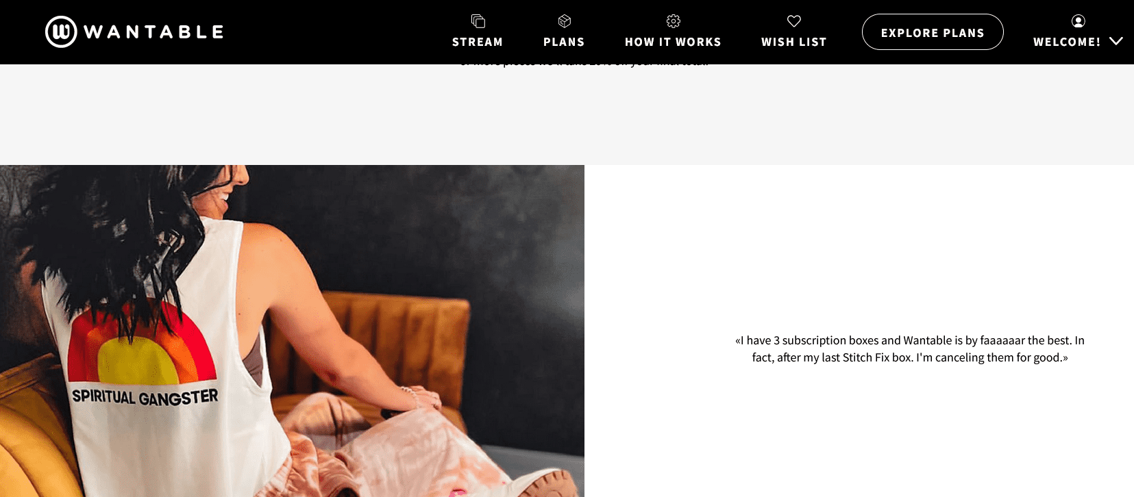 This is one of Stitch Fix’s main competitors. It works a lot like Stitch Fix, but you get more time to decide what to keep. You can choose between Sleep & Body Edit (lingerie and pajamas), Active Edit (fitness and loungewear), Men’s Active Edit (fitness and loungewear for the guys), or a Themed Edit (a theme within one of the categories Wantable offers).