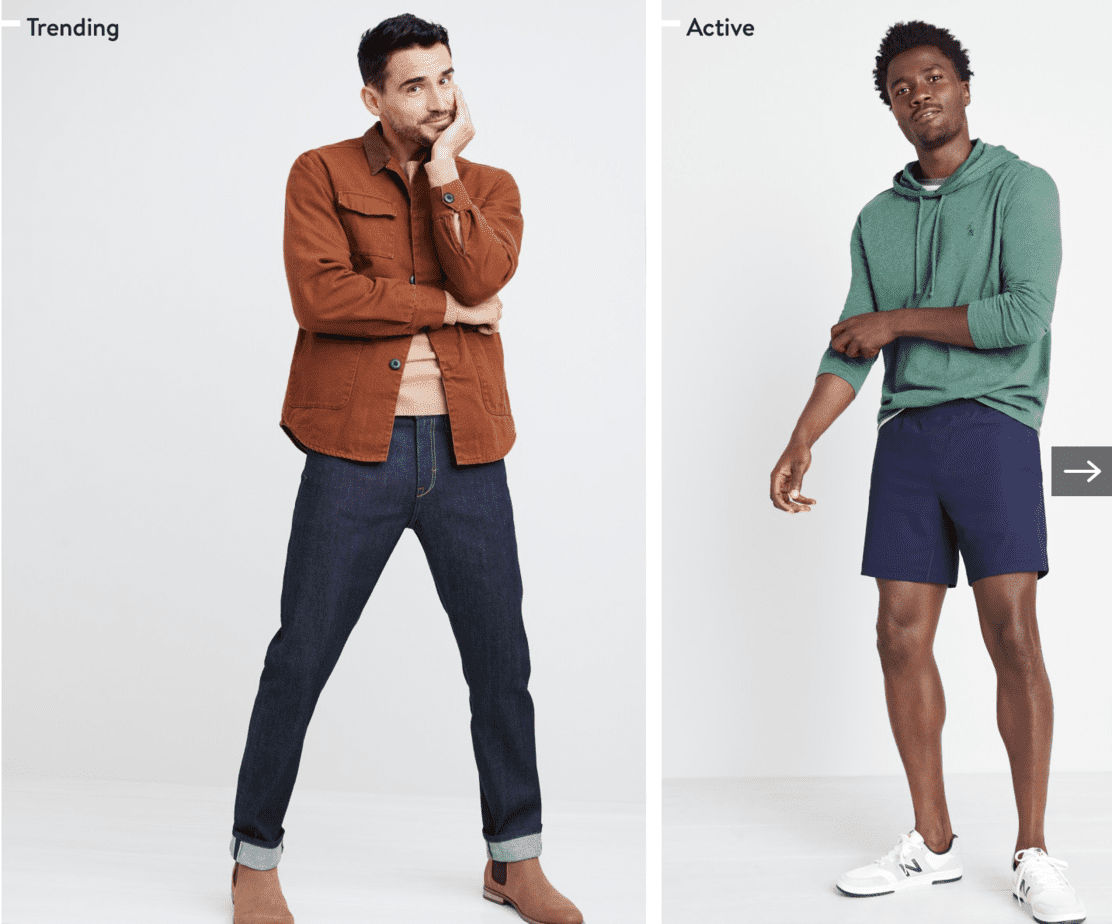 Stitch Fix offers too many brands to name, from more affordable to a few higher-end, and over 1000 as a whole. Styles range quite a bit, but for a direct comparison, men’s looks include: trendy; active; polished; casual, and weekend.