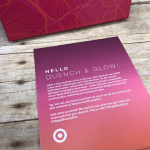 Every Target beauty box comes with a little informational card that has a list of all of the products that you have received in your box, as well as tips and tricks on how to use the products in the box, and a $3 of a coupon of beauty purchase of $15 or more.
